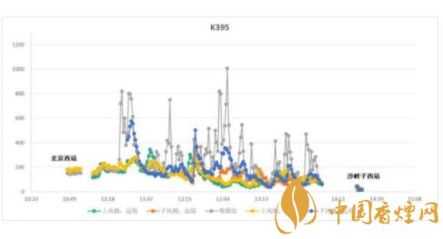 未禁煙的普速列車(chē)K395車(chē)箱內(nèi)空氣質(zhì)量(PM2.5) 圖片來(lái)源中國(guó)控?zé)焻f(xié)會(huì)官網(wǎng)