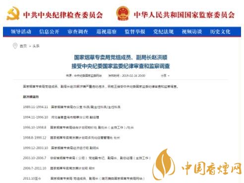 目前,國(guó)家煙草專賣局網(wǎng)站上關(guān)于趙洪順的相關(guān)新聞報(bào)道及重要講話已被刪除。