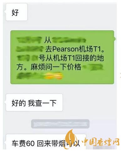(帶免稅香煙免接送車費(fèi)微信截圖)