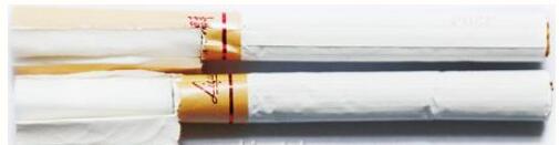 7、真品卷煙的涂膠位置與商標(biāo)紙邊緣有預(yù)留距離,假冒卷煙的涂膠位置與商標(biāo)紙邊緣一般無預(yù)留距離。