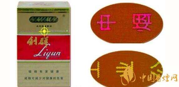 2、外包裝上的利群文字圖案,利群二字外圍的金色較淺,能清楚看見利群背景里有“liqun”拼音字母的為真品,反之則為假煙。