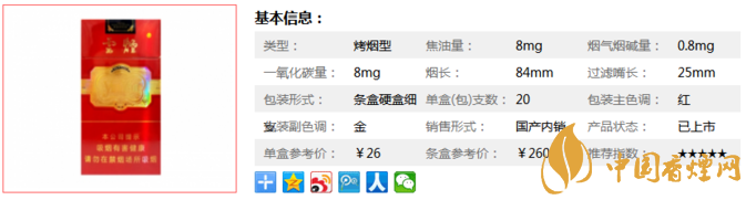 云煙(細(xì)支珍品)的參數(shù)