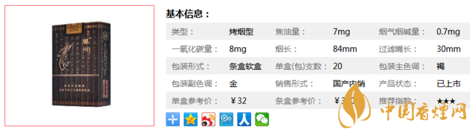 | 類(lèi)型 :烤煙型 | 焦油量 :7mg | 煙氣煙堿量 :0.7mg | 一氧化碳量 :8mg |