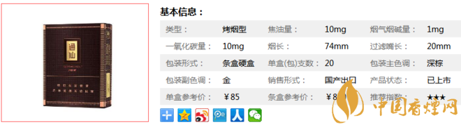 | 類型 :烤煙型 | 焦油量 :10mg | 煙氣煙堿量 :1mg | 一氧化碳量 :10mg |