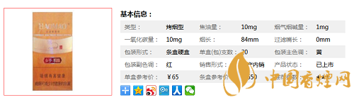 | 類型 :烤煙型 | 焦油量 :10mg | 煙氣煙堿量 :1mg | 一氧化碳量 :10mg |