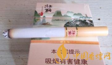 真龍壯麗香煙的畫面是以桂林山水為畫面,5包煙連在一起就是桂林山水全景圖。這包煙以象鼻山為畫面,山清水秀,竹排漁人,泛排江上,清新怡然,悠悠正在。煙支包裝簡約大方,在過濾嘴和煙的交接處有兩個(gè)金線圈,在圈中間豎寫著壯麗兩個(gè)字。