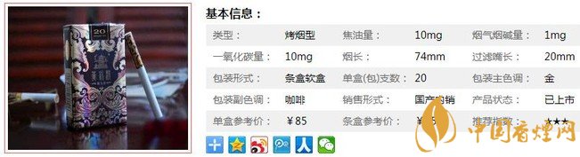 | 類(lèi)型 :烤煙型 | 焦油量 :10mg | 煙氣煙堿量 :1mg | 一氧化碳量 :10mg |
