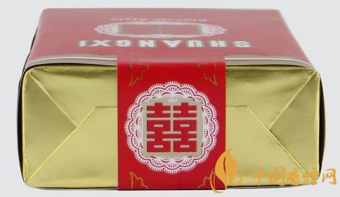 正面剪紙圖花潔白,“喜喜”則浮貼其上,嵌以金邊,喜氣洋洋。上為中文商標(biāo)“雙喜牌香煙”,下有“經(jīng)典雙喜”字樣,金線之下為大警語。煙支入眼,樸素清秀,豎紋煙紙上印有紅色“喜喜”,金葉兩側(cè)環(huán)繞,下有“01”字樣。濾嘴稍短,下鑲金圈,整體感覺有種典雅之秀氣。
