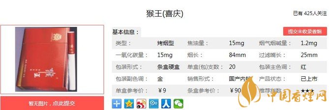 一、猴王喜慶香煙價格