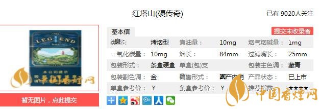 紅塔山硬傳奇煙支長(zhǎng)84mm,過(guò)濾嘴長(zhǎng)25mm,煙嘴上被墨綠色的細(xì)條環(huán)繞,里面寫(xiě)著since1956,以及紅塔山的字樣和傳奇的印章,整體風(fēng)格與煙盒一致,還是比較和諧。下面我們一起來(lái)看紅塔山硬傳奇的參數(shù)信息:焦油量:10mg 煙堿量:1.0mg 一氧化碳量:10mg