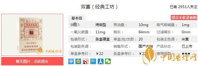 三、雙喜經(jīng)典工坊香煙參數(shù)