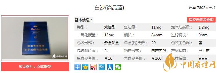 以上便是由香煙網(wǎng)小編為大家介紹的關(guān)于白沙尚品藍(lán)多少錢一包 白沙尚品藍(lán)口感及參數(shù)介紹的相關(guān)信息,想要了解更多有關(guān)內(nèi)容請點(diǎn)擊:好貓金絲猴大圣歸來香煙價(jià)格 好貓大圣歸來口感分析
