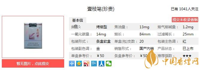 以上便是由香煙網(wǎng)小編為大家介紹的關于壹枝筆珍貴多少錢一包 壹枝筆珍貴參數(shù)及口感分析的相關信息,想要了解更多有關內(nèi)容請點擊:云煙時光碼頭價格 時光碼頭云煙怎么樣