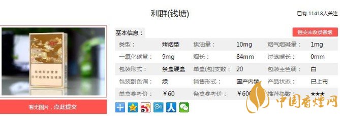 以上便是香煙網(wǎng)小編為大家介紹的關(guān)于利群錢塘香煙價(jià)格及口感點(diǎn)評(píng),最漂亮的利群香煙!的相關(guān)信息,看完之后大家是不是對(duì)于利群(錢塘)這款香煙的相關(guān)信息更加了解呢。大家還想查詢更多的相關(guān)內(nèi)容歡迎點(diǎn)擊:利群休閑系第一款細(xì)支高價(jià)煙,僅僅是官方報(bào)價(jià)就達(dá)到了100元一包!