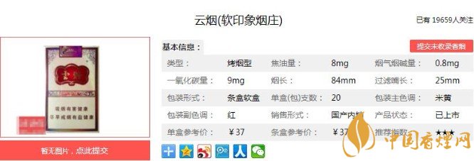 云煙(印象煙莊)系列與云煙重九系列、印象系列同出一脈,香原料均采自石林印象煙莊。煙支風格和重九也很相似,但是卻有著自己的特色。金棕色流紋襯以金紅色云煙行書,黃色的拼音字母,相互襯托出一種檔次感。下面跟著香煙網(wǎng)小編一起來了解云煙(軟印象煙莊)的相關信息吧。