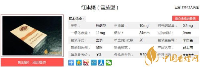 紅旗渠(雪茄型)雖然價格的定價是5元一包,但是在一些只有少量貨源的地區(qū),價格一路上漲,愣是被被炒高價格至60元一包,很多煙民想買都買不到。