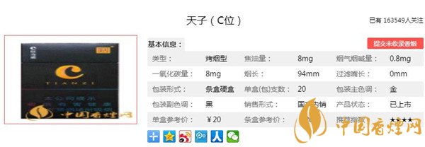 以上便是香煙網(wǎng)小編為大家介紹的關(guān)于天子C位香煙價格多少 天子C位香煙口感及參數(shù)介紹的相關(guān)信息,看完之后大家是不是對于天子(C位)這款香煙的相關(guān)信息更加了解呢。大家還想查詢更多的相關(guān)內(nèi)容歡迎點擊:嬌子金天子香煙官方價格表 嬌子金天子參數(shù)及口感