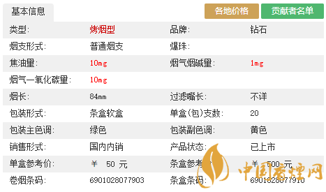 鉆石(軟荷花)采用外溝槽+植物顆粒二元復(fù)合嘴棒,外溝槽使得吸附性能更強(qiáng),截留了煙氣中粒相物,達(dá)到更好的過濾效果;采用天然植物多孔材料搭載荷香香味物質(zhì)的植物顆粒,增加香氣質(zhì)感、改善吸味、品味舒適。接裝紙采用植絨馬爾斯綠,手感細(xì)膩、口感舒適,給人以更好的手感體驗。經(jīng)香煙網(wǎng)小編市場調(diào)查這款煙價格為50元/包。