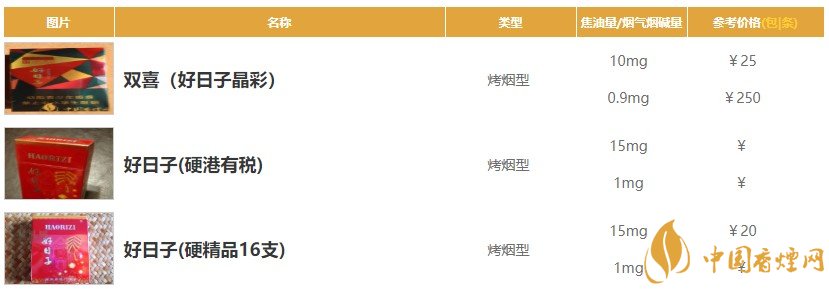 紅雙喜好日子香煙價格表圖