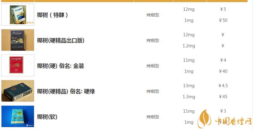 椰樹香煙價格表圖
