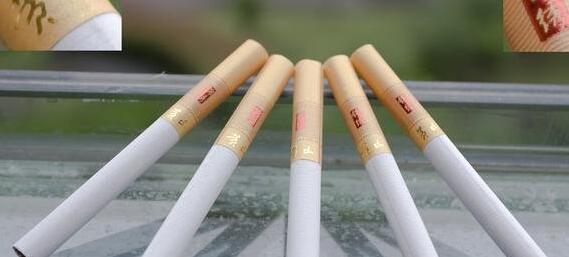 傳統(tǒng)的黃色反光過濾嘴,也被小圓點分成像郵票一樣的小格,有錦繡小條章的那格同樣也有像郵戳的波浪紋。卷煙紙是安徽中煙一貫的橫紋卷煙紙盤紙,煙絲橘黃,香氣帶一點微甜。