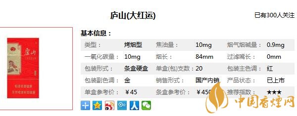 廬山大紅運(yùn)煙參數(shù)信息
