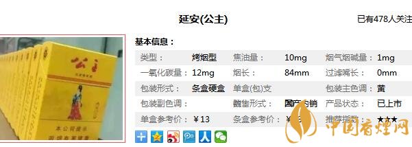 延安公主香煙參數信息