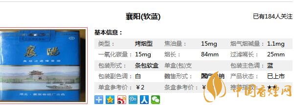 襄陽牌香煙參數(shù)信息