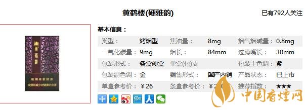 以上內(nèi)容是由香煙網(wǎng)小編為大家收集以及整理的關于,黃鶴樓硬雅韻多少錢一包以及黃鶴樓雅韻硬盒價格圖片相關的信息,了解更多有關信息請點擊:黃鶴樓雪茄型香煙價格表。