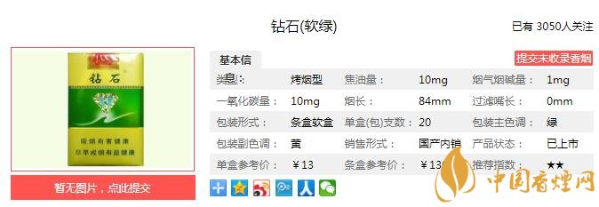 一、鉆石軟綠香煙價(jià)格