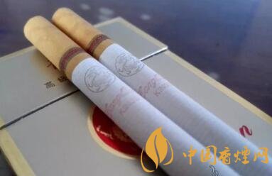 又是款淺金色調(diào)為主、修飾以深色金邊框的包裝設計,有些像芙蓉王硬黃的造型。圓圈中的金龍造型,更像是抽象畫法的,沒有真龍或者其它帶有龍的圖案香煙的豐滿與霸氣。