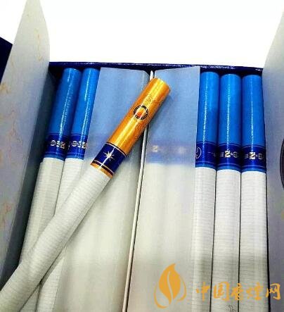抽出幾支煙,看到過濾嘴的樣子,頓時覺得不同凡響。煙支居然采取少見的19+1搭配形式——1支金色嘴“煙王”和19支藍色嘴,馬上讓人聯(lián)想到,這必定是一款招待貴賓的好煙。