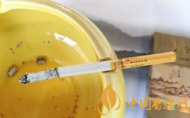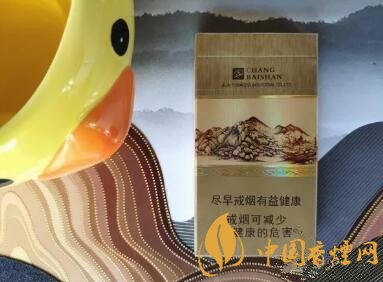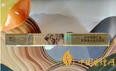 濾嘴與煙支以一條鐳射的窄條環(huán)繞,每支煙支的濾嘴上都印著長(zhǎng)白山及山水圖,還有與煙盒正面同樣的詩(shī)句。