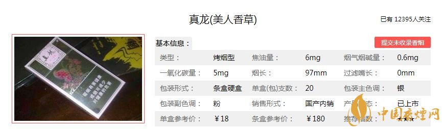 以上就是香煙網小編為大家介紹的真龍美人香草香煙的價格參數、包裝設計以及煙民點評。希望為各位煙民提供幫助。想了解更多香煙信息,請關注香煙網。