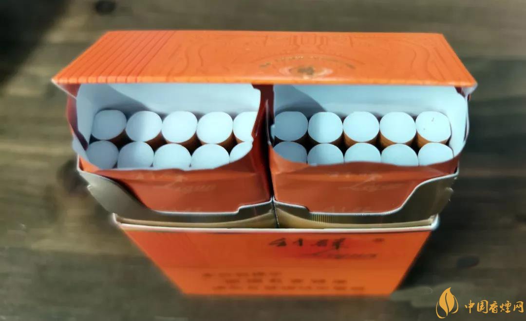 翻開橙色的內(nèi)襯紙,可以看到兩個(gè)盒腔每個(gè)里面都是10支煙,采用的是雙排5支的結(jié)構(gòu)。這樣的分腔式結(jié)構(gòu),讓產(chǎn)品在收納和取用時(shí)更加方便,也算是產(chǎn)品的一個(gè)創(chuàng)新點(diǎn)之一。