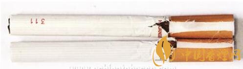 真品鋼印為動態(tài)打印,整體鋼印深淺不一,高低不平,間距不等,每個(gè)鋼印也呈深淺不一,鋼印筆畫較細(xì);假煙鋼印為靜態(tài)打印,整體鋼印排列整齊,深淺一致,鋼印筆畫較粗,與真品特征存在明顯差異。