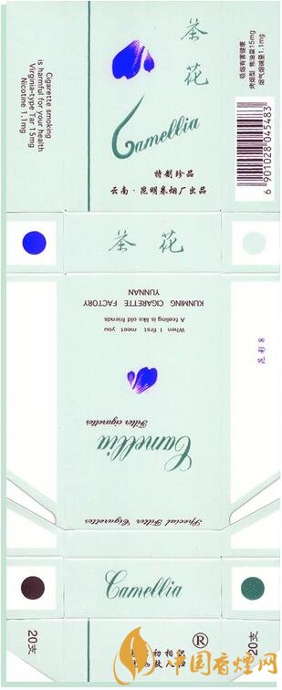1998年昆明卷煙廠出品。“茶花”牌卷煙創(chuàng)牌于1975年,茶花是云南特有的名花,也是昆明市的市花。1975年昆明卷煙廠用英國引進(jìn)的全國煙草行業(yè)第一臺過濾嘴卷煙設(shè)備,生產(chǎn)云南第1包過濾嘴香。1976年,首批銷往香港,開創(chuàng)中國過濾嘴卷煙出口創(chuàng)匯先河。