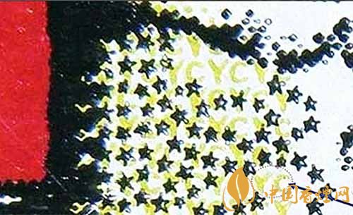 6、真煙具有微縮印刷特征,條盒及小盒在華表的中下位置,有黑色的★和黃色的YC字母,用五倍放大鏡就能看到。而假煙在這方面做的遠(yuǎn)遠(yuǎn)不足,五角星大多是殘缺不全的或者顏色不均勻。