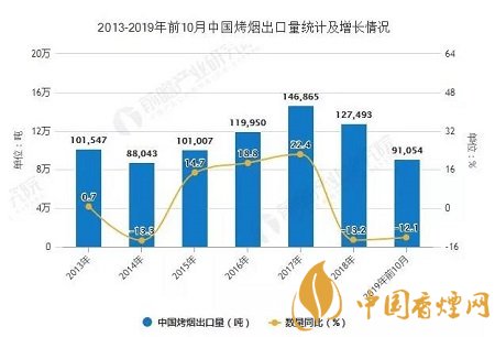 2019年前10月中國(guó)烤煙出口量突破9萬(wàn)噸。據(jù)中國(guó)海關(guān)總署數(shù)據(jù)顯示,2019年10月中國(guó)烤煙出口量為6128噸。累計(jì)方面,2019年1-10月中國(guó)烤煙出口量達(dá)到91054噸,同比下降12.1%。