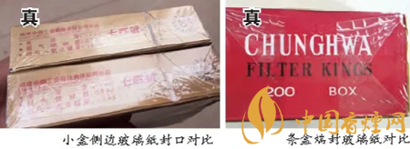 如何從外觀識別二次粘封的假冒卷煙,筆者現(xiàn)將近期市場上查獲的二次粘封的假冒卷煙與真品卷煙的部分外觀特征進(jìn)行差異化對比。(注:以下鑒定點(diǎn)非全部)
