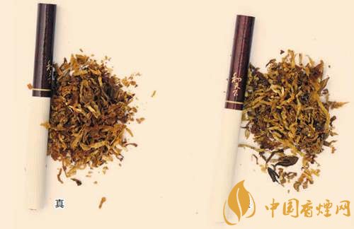 真煙煙支采用復(fù)合濾嘴,煙絲切絲寬度均勻,煙絲疏松、光澤油潤(rùn)性好、呈檸檬黃色,煙絲結(jié)構(gòu)為葉絲和少量膨脹梗絲;假煙煙支采用普通濾嘴,制絲工藝簡(jiǎn)單,煙絲寬度不均勻,有少量梗絲,未經(jīng)過(guò)膨脹處理。