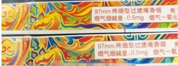真煙藍(lán)色下邊是過渡的淡藍(lán)色,假煙無過渡色直接變成綠色。真煙中間為藍(lán)色,假煙全都是綠色。圖右側(cè)四個標(biāo)注處相同,真煙為藍(lán)色的三個圓珠,假煙為綠色的三個圓珠。