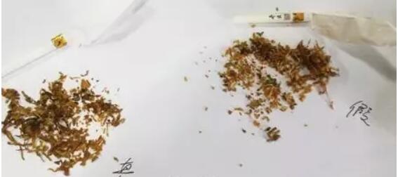 真煙的煙絲切絲均勻、碎末少,油潤性好,看上去呈金黃色;假煙的煙絲雜質(zhì)多、油潤性差,看上去顏色較淡。也是冬蟲夏草香煙真假鑒別方法之一