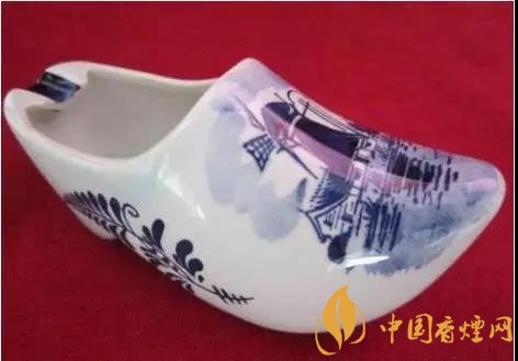 這款工藝煙灰缸是來自荷蘭的這款煙灰缸,呈尖頭木屐形,底色為白色,除少量文字與邊紋外,圖案皆以藍(lán)色繪之。這款高檔煙灰缸圖片鞋身左右前后都繪有對稱的三葉草圖案;鞋面繪有荷蘭風(fēng)車、村舍及水田灌木圖案;此外,鞋頭還用淡色繪以藍(lán)天白云,籠罩上空。而鞋口靠近鞋跟方向的邊沿處,設(shè)計了三個凹槽,方便多人吸煙時使用。總而言之,是一款顏值與實(shí)用并存的煙灰缸無疑了。